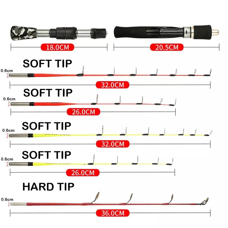 Längen: Eisfischstange sind in der Regel kürzer als normale Fischstange und reichen in der Regel zwischen 18 und 48 Zoll lang.Die kürzere Länge ermöglicht eine einfachere Handhabung im engen Raum eines Eisfischerei-Schutzes.